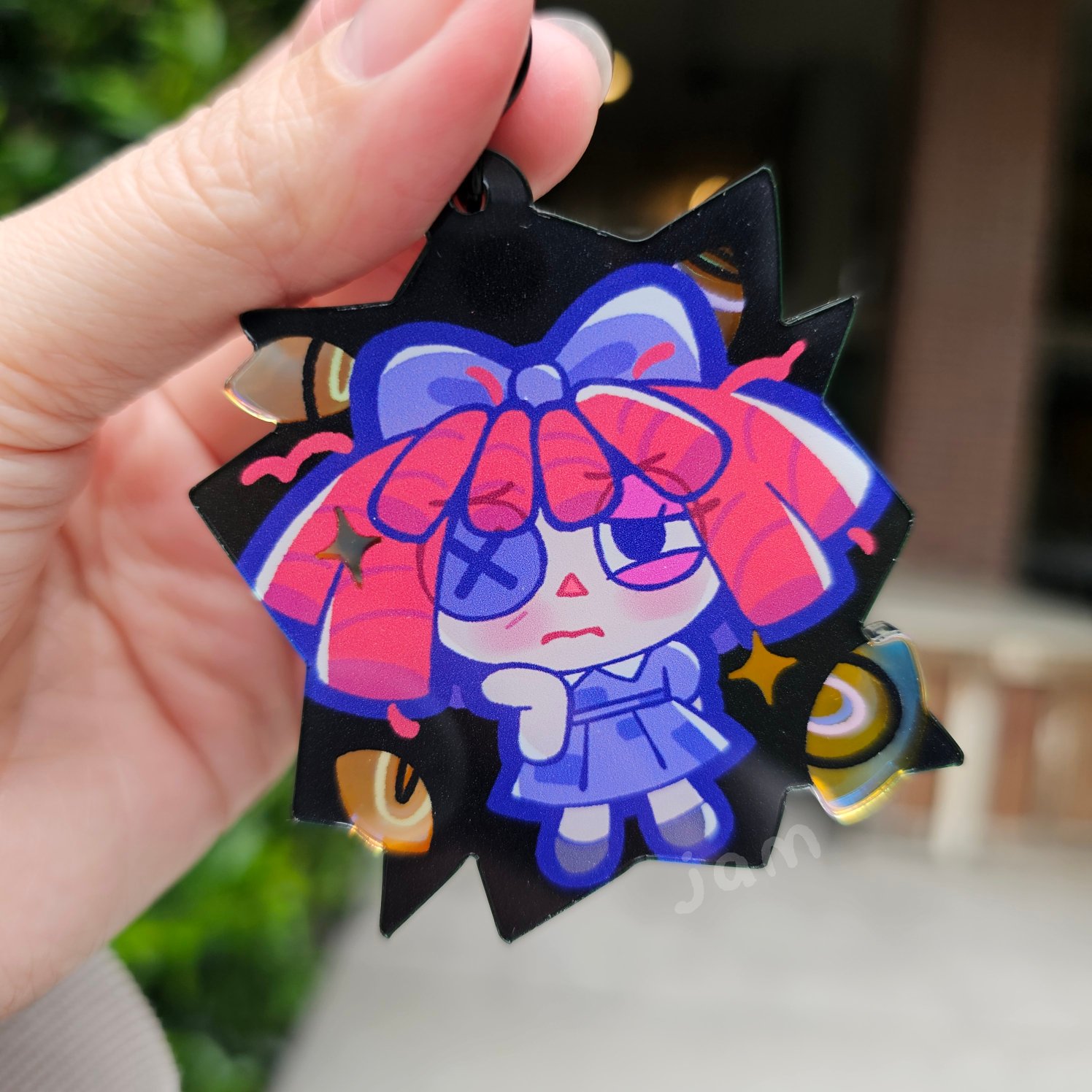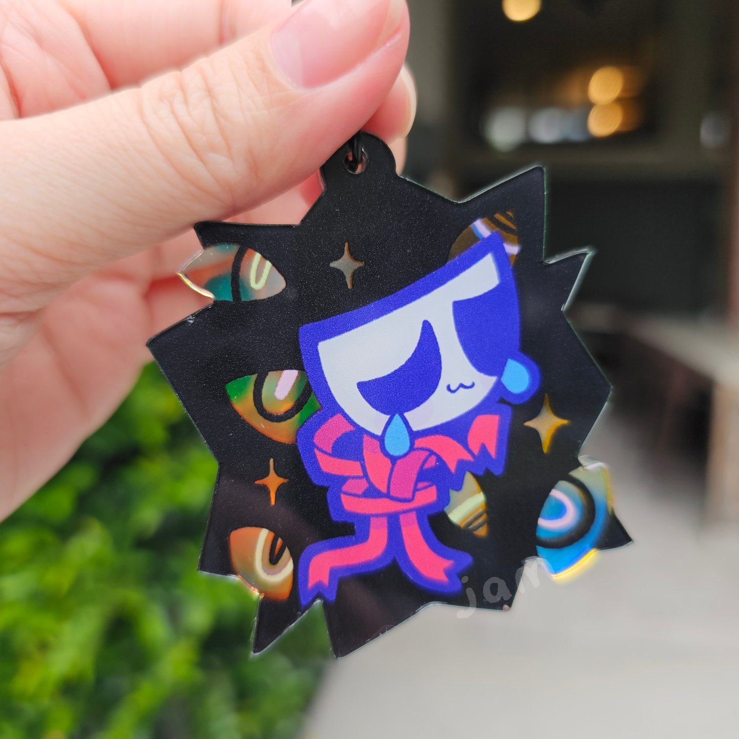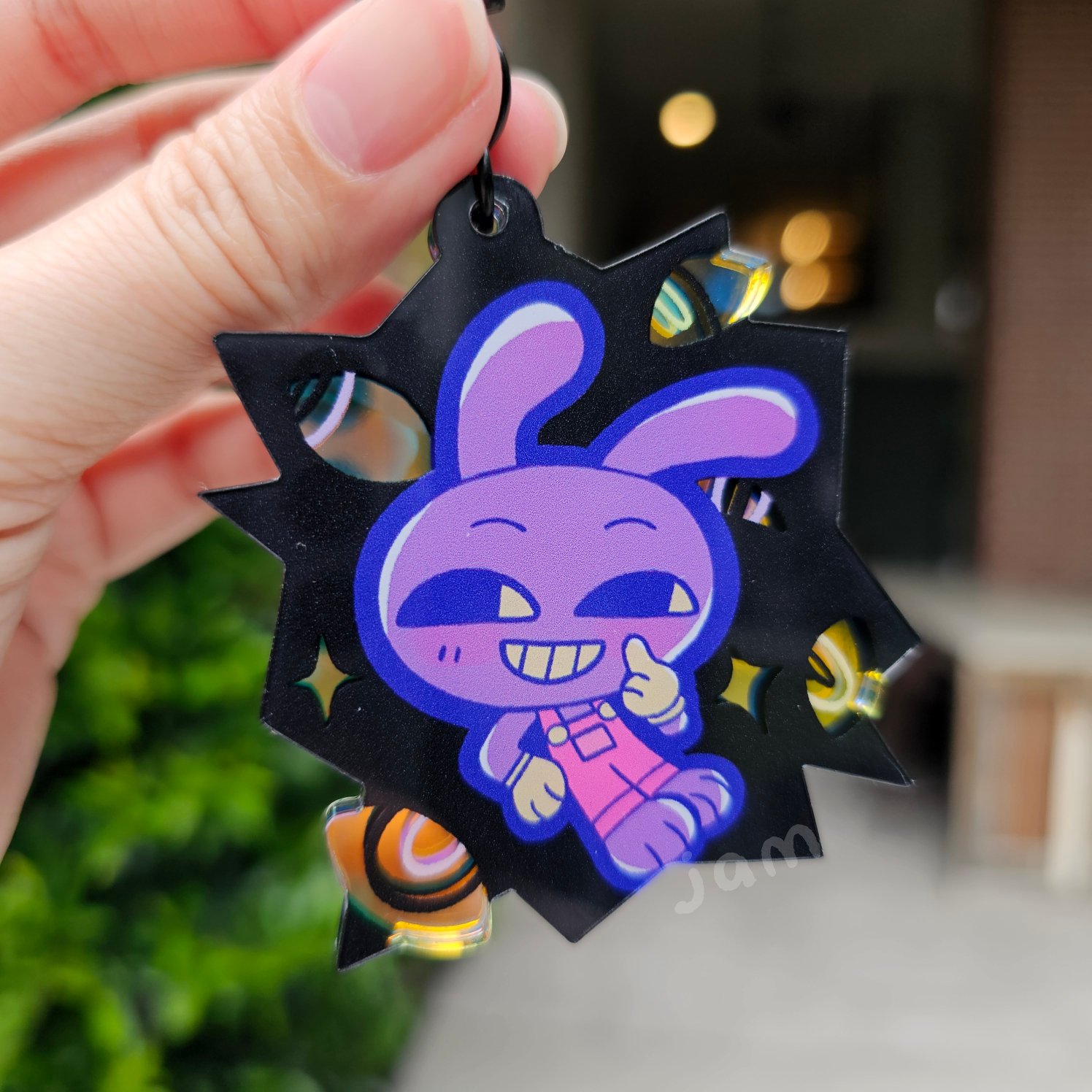 Double sided art, rainbow holographic charm